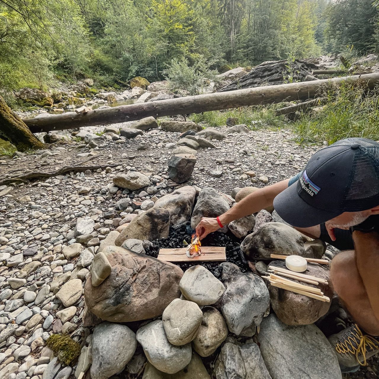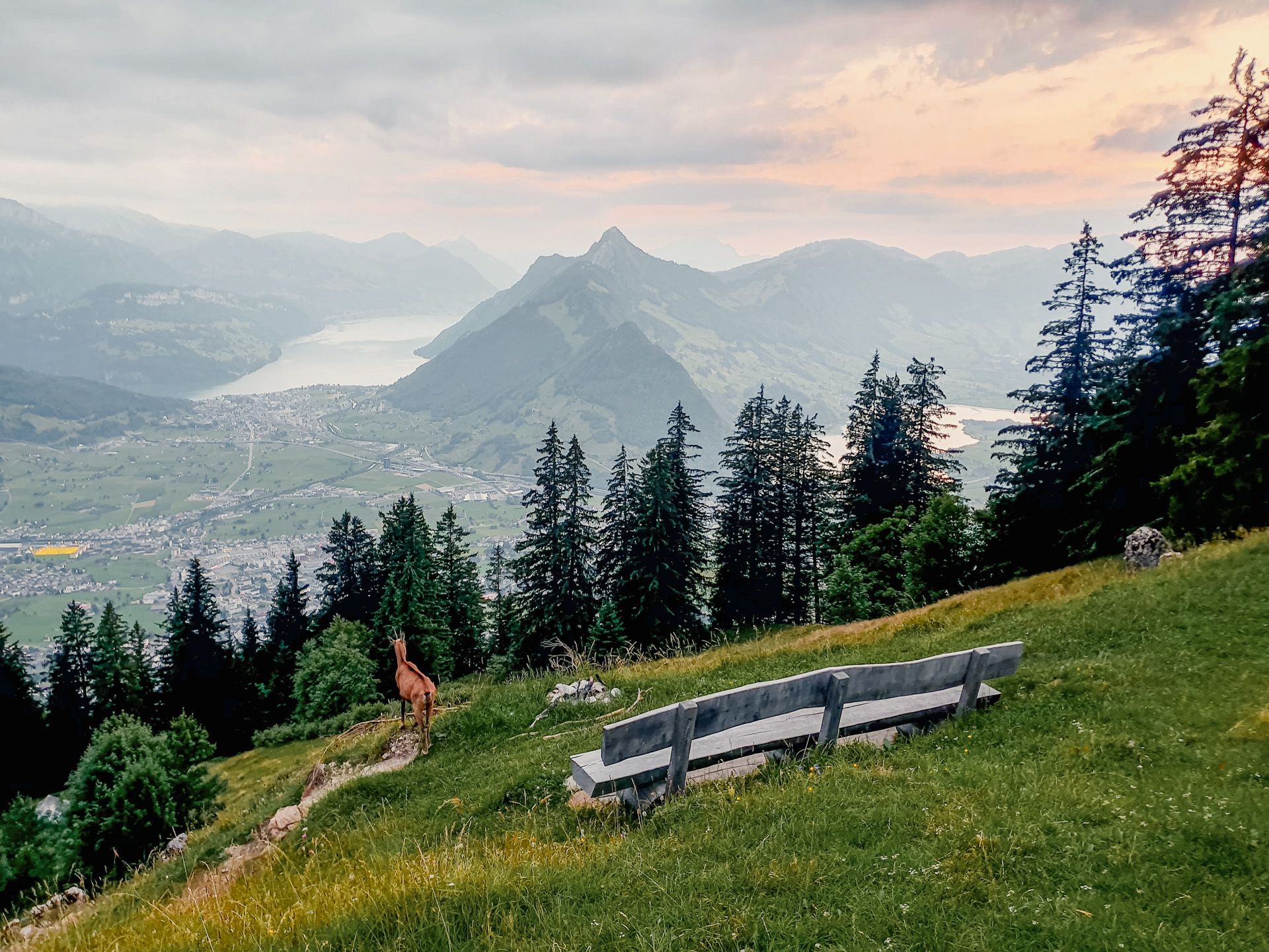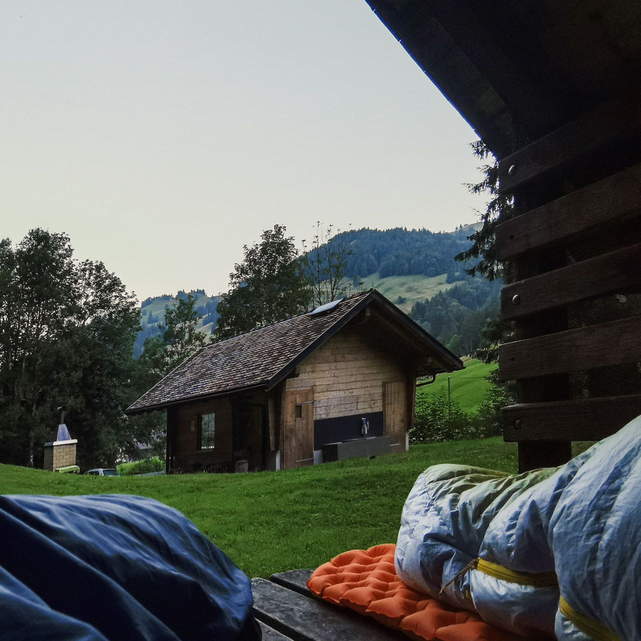 Ein klassisches 5-9 Mikroabenteuer stand bei uns auf dem Plan, sprich montags nach der Arbeit direkt vom Büro in Einsiedeln los und am Dienstag in der Früh dann zurück ins Büro. Die Stunden dazwischen verbrachten wir aber anders als üblich. Wir recherchierten etwas und fanden eine Grillstelle in der Nähe, die auch ein WC hat. Ein bisschen Luxus darf ja schließlich sein. Mit dem Bus ging es in die richtige Richtung und anschliessend zu Fuß bis zu "unserer" Grillstelle. Neben der schönen Lage am Waldrand war unser Highlight auf jeden Fall die überdachte Plattform als Schlafplatz, denn ein Zelt packten wir bewusst nicht ein. Den Abend liessen wir am Feuer ausklingen, es wurde gegessen, getrunken, getratscht und gelacht. Zufrieden ging’s nach Einbruch der Nacht in den kuscheligen Schlafsack.