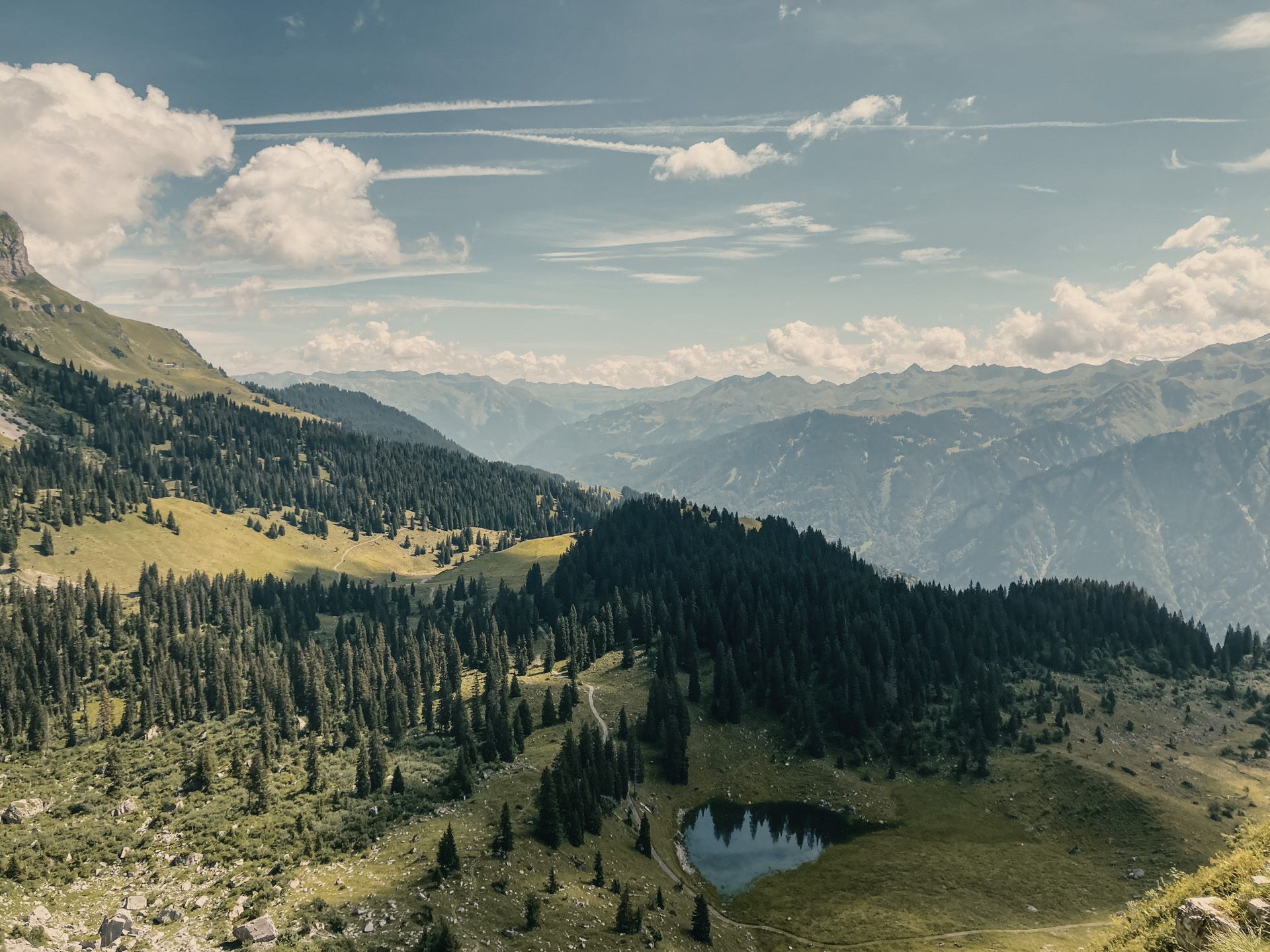 Am nächsten Tag erwartete mich ein weiterer, strenger Aufstieg, welchen ich mir selbst mit einem kühlen Bad im Bergsee belohnte, bevor es wieder runterging und ich dann in Studen eintraf. Rückblickend kann ich sagen, dass solche Unternehmungen alleine zu unternehmen, zu besonders intensiven Erlebnissen führt. In meinem Fall bemerkte ich das besonders, als das große Gewitter vorbeizog.